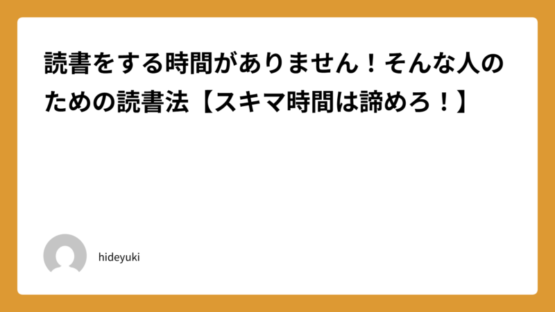 以上!『読書をする時間がありません!そんな人のための読書法【スキマ時間は諦めろ!】』でした!